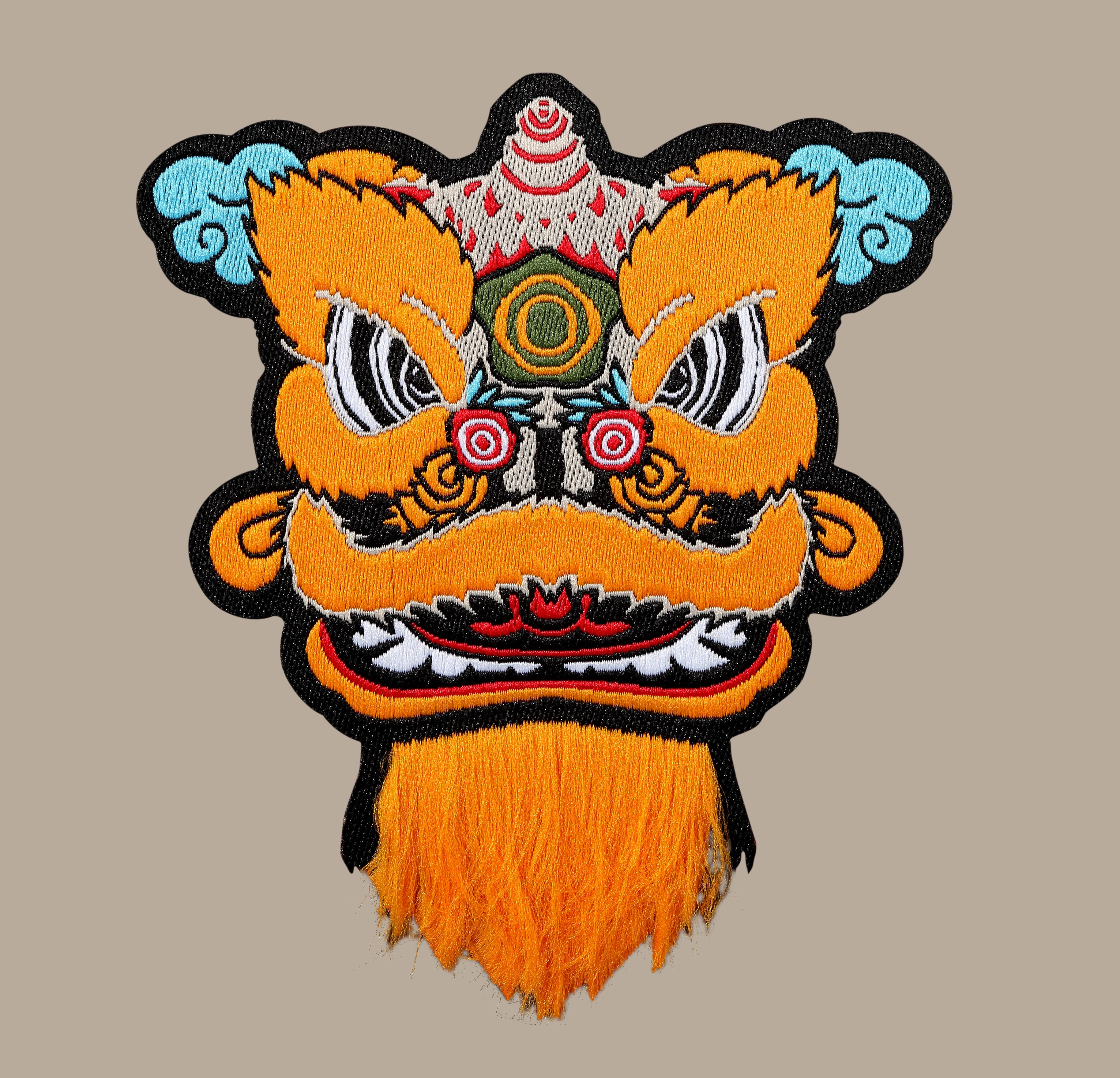1. La caractéristique culturelle de la danse du lion est tissée sur l'écusson. Le corps principal est la technique de tissage du logo, mais les moustaches du lion sont en effet le point culminant de ce design, rendant l'ensemble du produit vivant et vivement expressif. Le dos est équipé d'une surface de fixation Velcro, qui peut être utilisée dans n'importe quelle partie du vêtement avec une texture en daim, ou elle peut également être utilisée pour des projets de bricolage.